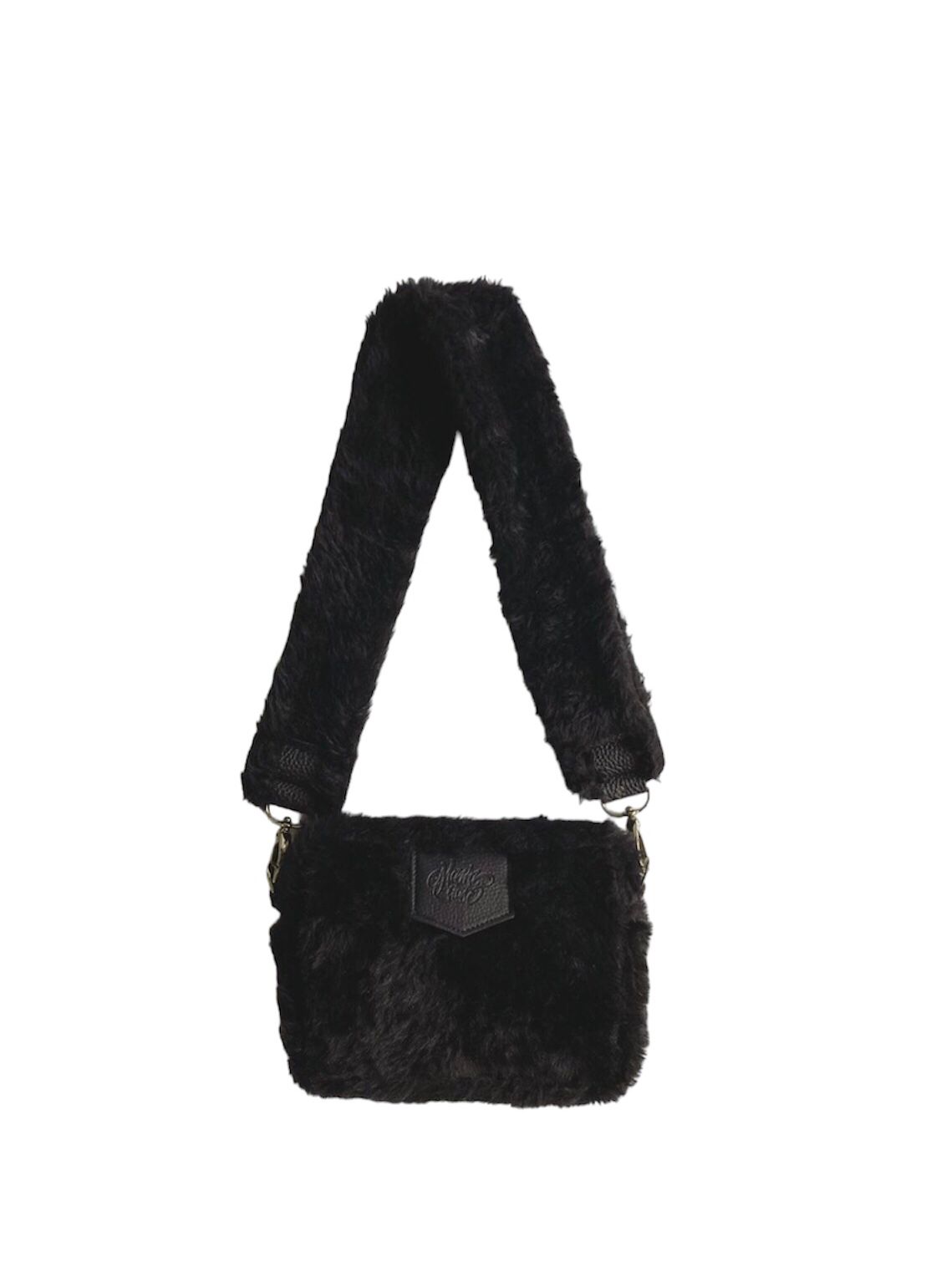 Maria Pelúcia, vem com a alça e corpo em pelúcia, bolso interno, zíper de metal e etiqueta frontal feita em alta frequência. Fabricação Própria.