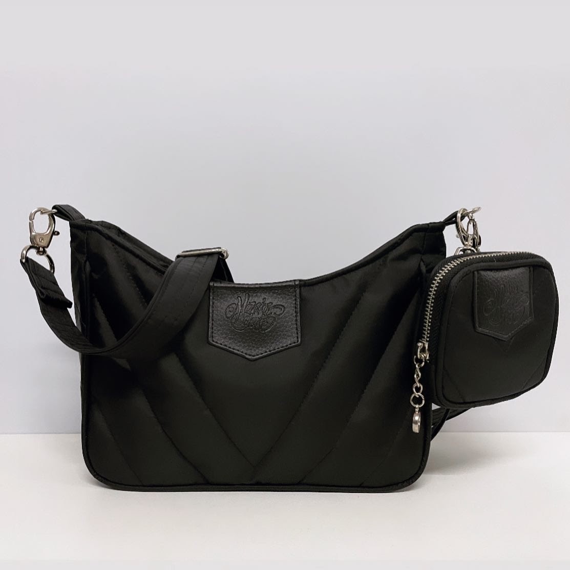 Confeccionada em nylon impermeável, com alça regulável e removível. Possui bolso na parte traseira e porta-níquel do mesmo material. Fabricação Própria.